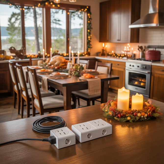 Thanksgiving in Big Bear is pure magic. Fresh snow blankets the mountains, smoke curls from cabin chimneys, and families gather to celebrate gratitude in one of California's most beautiful settings. But while you're preparing the perfect feast and welcoming guests to your mountain retreat, your home's electrical system is facing its biggest test of the year. Between cooking marathons, space heaters working overtime, extra guests plugging in devices, and early holiday decorations, Thanksgiving puts unprecedented strain on your electrical circuits. For Big Bear homeowners—especially those with older cabins—this combination can lead to tripped breakers, power outages, or worse: electrical fires that destroy your holiday and endanger your family. Let's make sure your Thanksgiving stays safe, warm, and fully powered. Why Thanksgiving Creates Perfect Storm Conditions for Electrical Problems Your electrical system handles normal daily use without complaint. But Thanksgiving isn't normal. Here's what your circuits are dealing with in Big Bear homes this week: Kitchen Appliances Running Simultaneously: That 25-pound turkey requires hours in the oven. Add your stovetop, microwave, coffee maker, instant pot, slow cooker, stand mixer, and warming trays—all running at once. Most kitchens have two 20-amp circuits, which sounds like plenty until you calculate the actual load. Heating System Overload: Big Bear temperatures on Thanksgiving often hover around freezing. Your furnace cycles frequently. Guests arrive cold and immediately request space heaters for bedrooms. Electric blankets come out of storage. Suddenly, you're drawing maximum power on circuits that normally cruise along comfortably. Vacation Rental Considerations: If you rent your Big Bear property on Airbnb or VRBO, Thanksgiving week is prime season. Renters often bring every cooking gadget imaginable and have zero knowledge of your electrical system's limitations. Older Cabin Electrical Systems: Many Big Bear cabins were built in the 1960s-1980s with 100-amp service panels designed for simpler times. Modern Thanksgiving demands often exceed what these systems can safely provide. The result? Breakers trip during critical cooking moments. Lights flicker when heaters kick on. Or worst case—circuits overheat and create fire hazards. Turkey Fryer Safety: Don't Burn Down Your Cabin Deep-fried turkey has become a Thanksgiving tradition, and for good reason—it's delicious. But turkey fryers, especially electric models, pose serious risks if used improperly at your Big Bear property. Electric Turkey Fryer Power Requirements: These appliances draw 1,500-1,800 watts continuously. That maxes out a standard 15-amp circuit completely. If anything else on that circuit is running—even a porch light—you'll trip the breaker. Never Use Extension Cords: The single most dangerous mistake is plugging turkey fryers into extension cords. The high amperage draws cause extension cords to overheat rapidly, melting insulation and starting fires. Always plug directly into a dedicated outlet. Outdoor GFCI Outlets Required: Turkey fryers should only be used outdoors, plugged into GFCI-protected outlets. Big Bear's cold and potentially wet weather makes GFCI protection absolutely essential to prevent electrical shock. Propane Alternative: Honestly? Propane turkey fryers are safer and more practical for Big Bear conditions. They eliminate electrical concerns entirely, heat oil faster, and work even during power outages. If you're committed to electric frying, verify your outdoor outlets can handle the load and have proper GFCI protection. Better yet, call an electrician to install a dedicated 20-amp circuit specifically for outdoor cooking equipment. Managing Kitchen Circuit Loads During Holiday Cooking Your Thanksgiving feast requires strategic electrical planning, especially in older Big Bear cabins where kitchen circuits are limited. Identify Your Kitchen Circuits: Most kitchens have at least two separate 20-amp circuits for countertop outlets. Some newer homes have three or four. Grab a circuit tester from the hardware store and map out which outlets connect to which breakers. This knowledge prevents overloads before they happen. Calculate Appliance Wattage: Microwave: 1,000-1,500 watts Coffee maker: 800-1,200 watts Instant Pot: 1,000-1,200 watts Slow cooker: 200-300 watts Stand mixer: 300-500 watts Toaster: 800-1,500 watts Electric griddle: 1,200-1,500 watts A 20-amp circuit at 120 volts provides 2,400 watts safely. Run your microwave and coffee maker together? You're already over budget if you add anything else. Strategic Cooking Schedule: Avoid running multiple high-draw appliances simultaneously. Make coffee first, then unplug it before starting the microwave. Use slow cookers overnight when other appliances are off. Coordinate your cooking timeline around electrical capacity, not just oven space. Avoid Power Strips in Kitchens: Never plug cooking appliances into power strips or multi-outlet adapters. These aren't designed for high-amperage loads and create fire hazards. If you need more outlets, have a licensed electrician install them properly. Watch for Warning Signs: Lights dimming when appliances turn on, warm outlets, or burning smells all indicate overloaded circuits. Redistribute your load immediately if you notice these symptoms. Many Big Bear cabin owners eventually upgrade to 200-amp service panels with additional kitchen circuits. If Thanksgiving cooking feels like an electrical juggling act every year, it's time to consider a panel upgrade. Space Heater Safety for Big Bear's Cold Weather Thanksgiving temperatures in Big Bear often require supplemental heating, especially in bedrooms and bathrooms that don't get adequate warmth from central systems. But space heaters are the leading cause of winter electrical fires. One Heater Per Circuit Rule: Space heaters draw 1,500 watts—the maximum safe continuous load for a 15-amp circuit. Never 